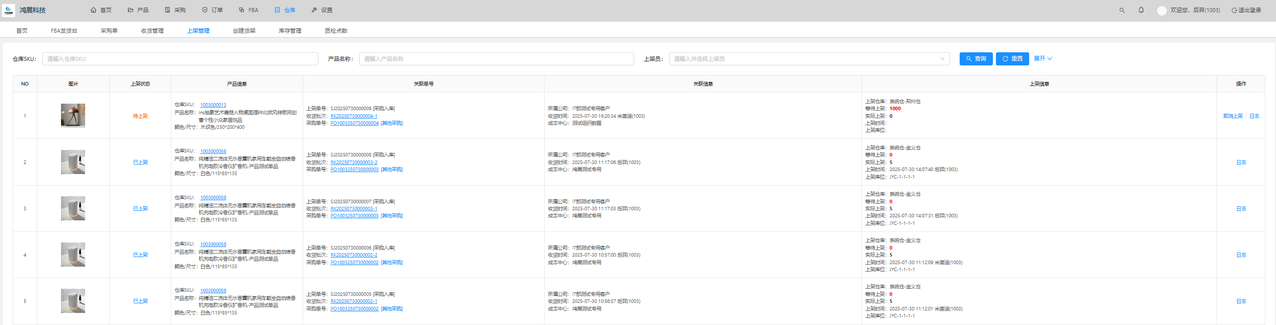 1.上架单来源:收货或质检板块,收货后,每一个SKU会生成对应的上架单。