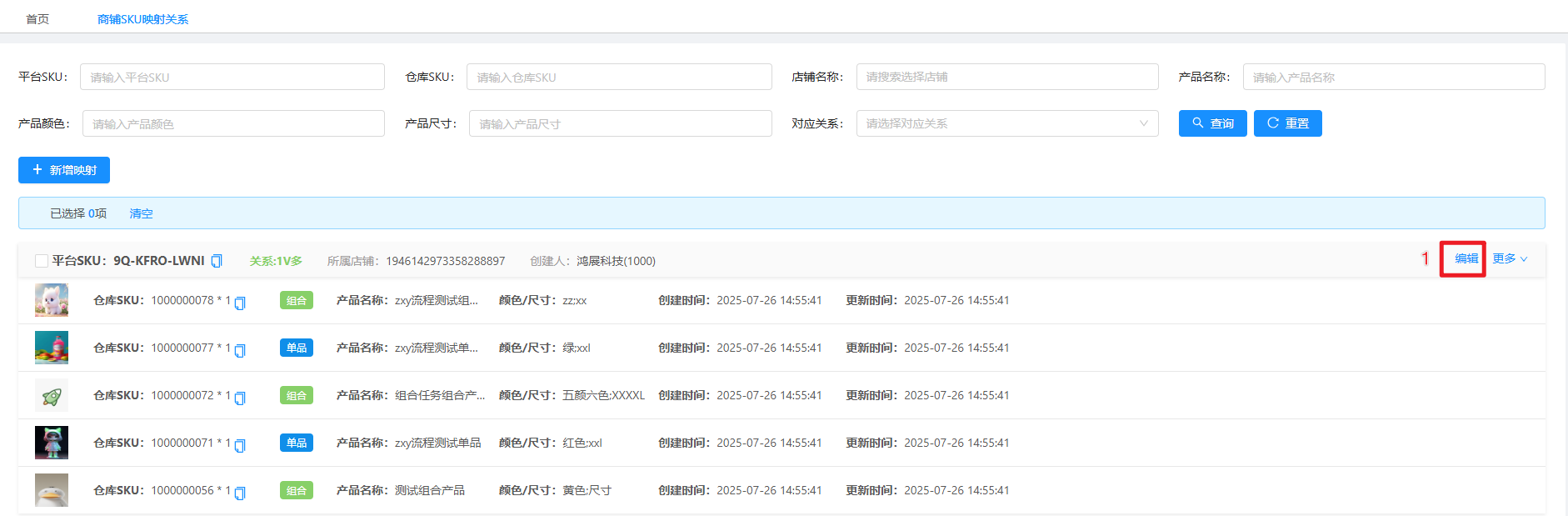 页面入口:ERP-产品-产品档案-店铺SKU映射关系