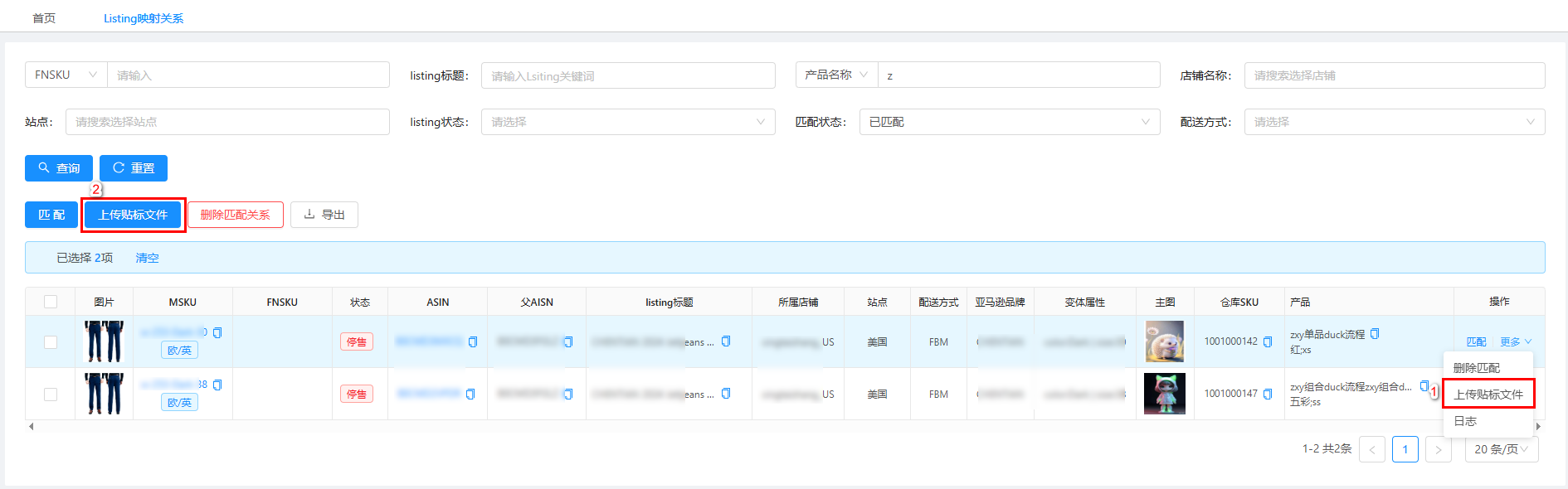 支持对单一Listing上传对应的标签,如下图中步骤1。