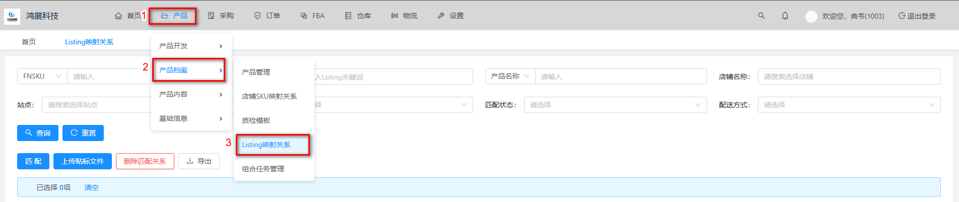 如下图,按1-2-3步骤进入Lisiting映射关系页面,有此页面权限的人可查看登录账号配置店铺下的Lisiting数据信息。