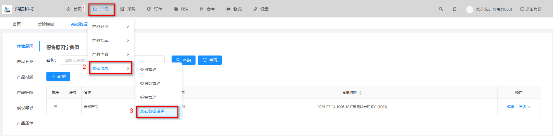 维护本公司划分的【停售原因】字段值,可新增、编辑、删除该字段值;可查看修改记录。