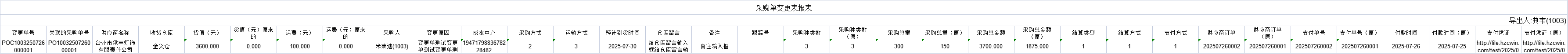 点击【导出】可将所选采购单变更记录导出,导出文件如下图所示: