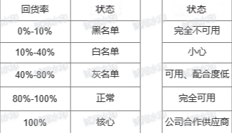 状态:可根据录入的回货率高低自动匹配,同时支持手动修改。回货率与状态关系如下: